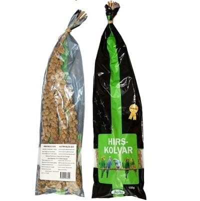 Hirsekolber Bello består av gule hirsekolber som serveres hele på stilk, og fungerer som snacks til de fleste frøspisende burfugler. Gul hirse regnes som et lettere alternativ til solsikkefrø fordi den typisk inneholder mindre olje.