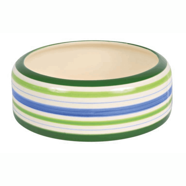 Oppdag den perfekte matskålen for din kjære firbeinte venn med vår stilige matskål i keramikk med striper. Med sin avrundede kant forhindrer den at maten søles, noe som gjør måltidene din enda mer behagelige og ryddige.