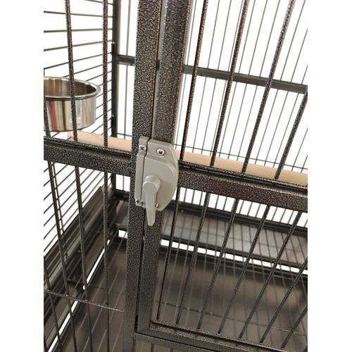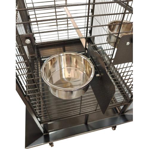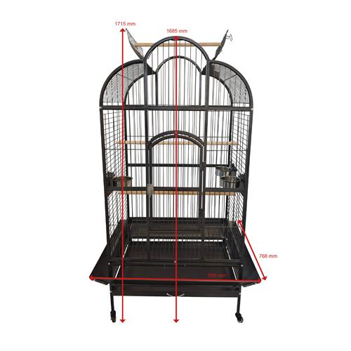 2 pinner til selve buret, 1 pinne til toppen av buret, 3 rustfrie stålskåler, Farge: Metall sort.