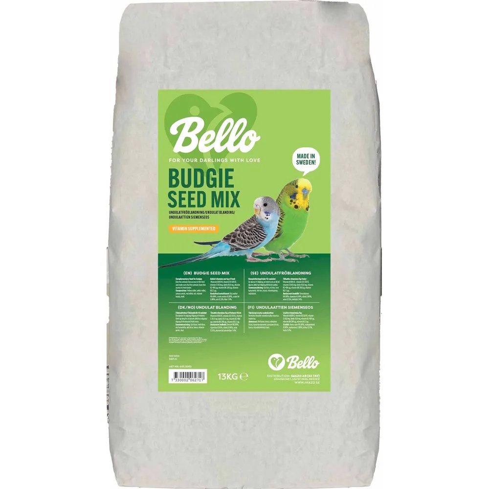 En balansert frøblanding som kompletterer kosten til undulater med både næring og stimulans. Blandingen inneholder nøye utvalgte frø og korn som gir berikning og støtter fuglens naturlige atferd. Snäckskal er tilsatt for å bidra med kalsium, og vitaminpellets gir ekstra næringsmessig støtte. Fôret pakkes i Västergötland med råvarer fra lokale produsenter så langt som mulig.